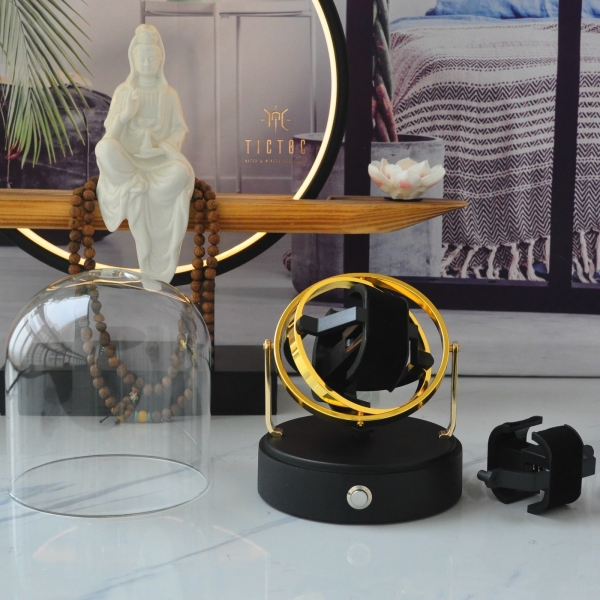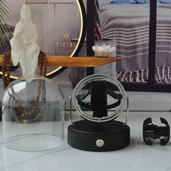 Được thiết kế theo mẫu đế xoay 3D nổi tiếng của hãng Orbit. Mẫu đế 3D này có nhiều lớp vòng tạo hiệu ứng thị giác khi xoay nhiều chiều giống quỹ đạo 1 tinh cầu, thích hợp cho quý thượng khách thích sự độc đáo, vừa tích cót lại vừa là 1 món đồ trang trí trên bàn làm việc hoặc trong cửa hàng. Với giá thành hơn 2000$ mà chỉ dùng được 1 đồng hồ, mẫu của hãng Orbit khiến nhiều khách hàng đam mê nhưng lại chùn bước. Thì nay, Tictoc Box rất vui khi có thể mang về cho quý thượng khách của mình mẫu homage của em ấy với giá chỉ bằng 1/15 giá của nhà Orbit.