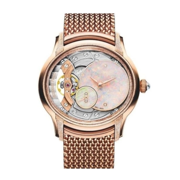 Millenary lôi cuốn trái tim và khối óc của người phụ nữ với sự pha trộn giữa thiết kế tinh tế và kỹ thuật savoir-faire. Mỗi mặt số opal trắng thực sự độc đáo và vỏ bằng vàng hồng có lớp hoàn thiện bằng Vàng mờ lấp lánh. Mẫu đồng hồ mới này cũng có vòng đeo tay lưới “Ba Lan” bằng vàng hồng 18 carat mang lại cảm giác cổ điển đặc biệt và cảm giác da thứ hai.