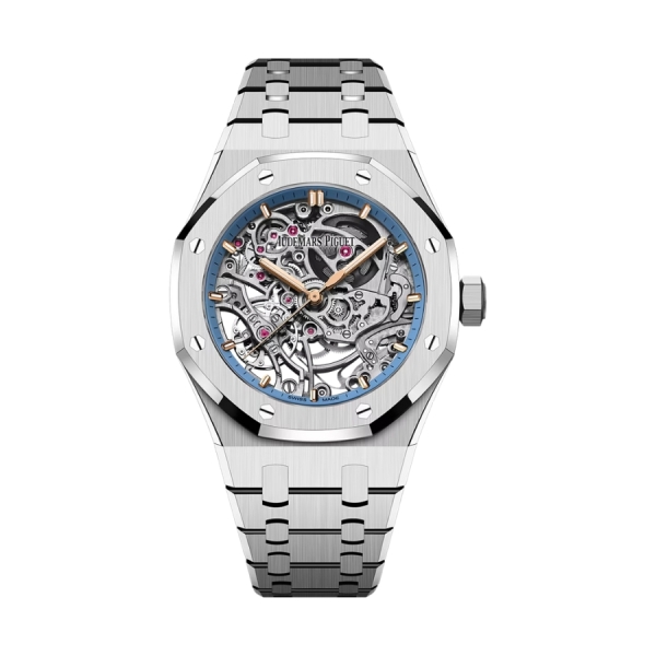 Một trong những điểm nổi bật nhất của Audemars Piguet Royal Double Balance Wheel Openworked 15467BC.OO.1256BC.01 chính là thiết kế “openworked” – mở lộ bộ máy cơ học bên trong, cho phép người đeo có thể chiêm ngưỡng hoạt động của các bộ phận bên trong. Thiết kế này không chỉ thể hiện tính nghệ thuật mà còn làm tăng thêm sự độc đáo, khác biệt cho sản phẩm. Đồng thời, việc sử dụng chất liệu vàng trắng 18-carat càng làm tôn lên giá trị đẳng cấp của chiếc đồng hồ này.