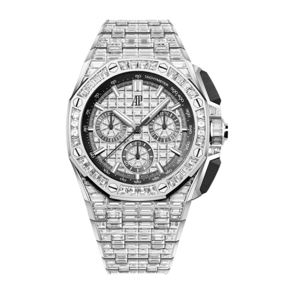 Kim cương baguette đính trên bezel: Phiên bản 26425BC.ZZ.8045BC.01 được trang trí bằng kim cương baguette, những viên kim cương này được chọn lọc và chạm khắc tinh xảo để tăng thêm vẻ đẹp cho đồng hồ. Sự lấp lánh của kim cương giúp sản phẩm nổi bật và thu hút mọi ánh nhìn.