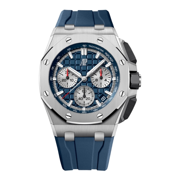 Sản phẩm này được đặc trưng bởi mặt số màu xanh hoàng gia và dây đeo bằng cao su, với kim bấm giờ tương phản màu cam – sự kết hợp màu sắc mang lại cảm giác tươi mới, thể thao cho biểu tượng 20 năm tuổi của Audemars Piguet.