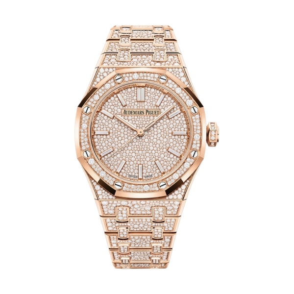 Audemars Piguet Royal Oak Selfwinding 15552OR.ZZ.1358OR.01 được chế tác từ những vật liệu cao cấp nhất, khẳng định sự tinh tế trong từng chi tiết. Sự kết hợp giữa vàng hồng 18-carat và kim cương brilliant-cut đã làm nên sự đặc biệt của mẫu đồng hồ này.
