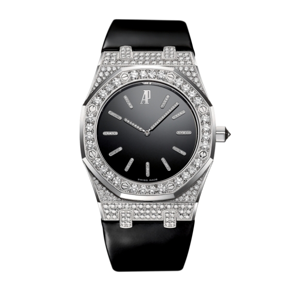 Đồng hồ tự lên dây. Vỏ bằng vàng trắng 18 carat được đính hoàn toàn bằng kim cương, mặt số đen sơn mài đánh bóng với các vạch giờ và kim được đặt bằng kim cương. Dây da đen sáng bóng. 306 viên kim cương cắt rực rỡ, ~ 5,01 carat.