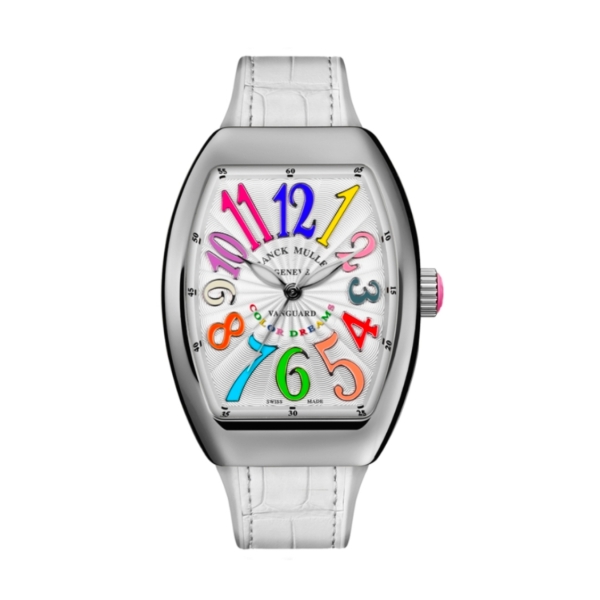 Đồng hồ Franck Muller Crazy Hours V 32 SC AT FO COL DRM (RS) là một sản phẩm đồng hồ với lớp vỏ được chế tác từ chất liệu Thép không gỉ cao cấp, có đường kính 32mm và mặt số dáng tonneau (dạng thùng) được Franck Muller khai thác triệt để trong các thiết kế kinh điển của Vanguard, đem lại một tổng thể hoàn hảo và có độ cong hoàn hảo giúp ôm sát cổ tay chủ nhân. Vành Bezel của đồng hồ được hoàn thiện bằng phương pháp đánh bóng quen thuộc. Franck Muller sử dụng bộ tia, cọc số Ả Rập chỉ giờ quen thuộc nhưng vẫn không quên cho sự xuất hiện của rainbow colorful đầy ấn tượng và đặc biệt năng động. Đặc biệt, chiếc đồng hồ được tích hợp dây da ca sấu cao cấp mang tone màu hồng trẻ trung hết sức đẹp mắt. Mặt kính chất liệu Sapphire với khả năng chống sốc và chống xây xước tuyệt vời thể hiện được rõ ràng cỗ máy cơ khí đẹp mắt hoạt động bên dưới.