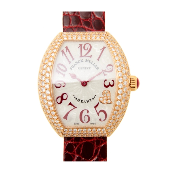 Franck Muller Heart 5002 M QZ D C4 CD (5N), về mặt thiết kế, không khó để nhận ra dáng vỏ Tonneau quen thuộc đặc trưng cho những mẫu đồng hồ xuất thân từ thương hiệu Franck Muller. Tuy vậy, bằng chất liệu vàng hồng 18K, những người thợ chế tạo đồng hồ nhà Franck Muller đã tạo bộ vỏ đồng hồ đặc biệt sang trọng và toát lên màu sắc quyền quý.