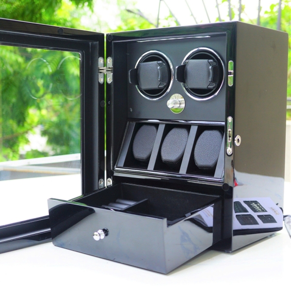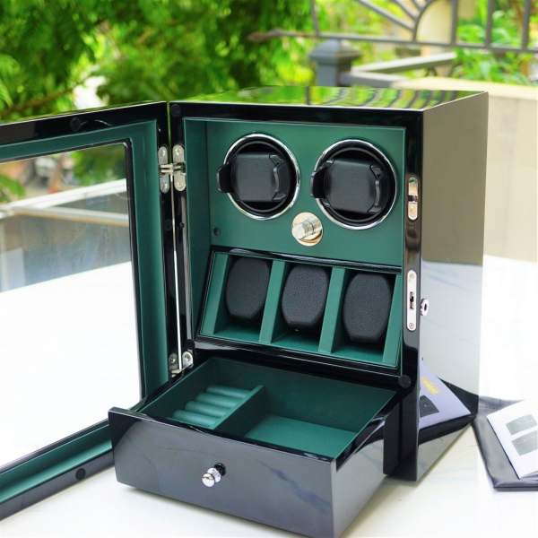 Hộp xoay Dukwin 2 đồng hồ kết hợp ngăn 3 tĩnh và ngăn trang sức